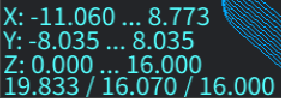 | Z: min … max | Z-axis range | Minimum to maximum coordinates in Z direction |