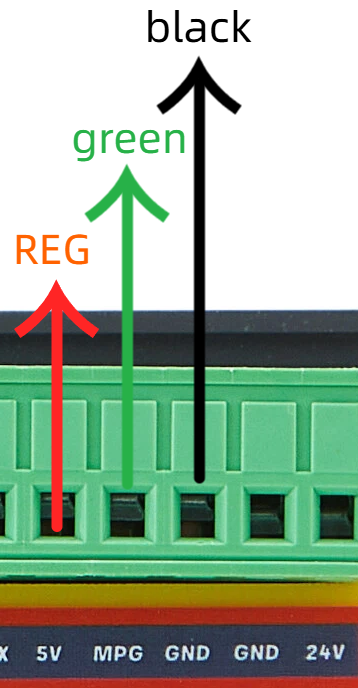 The red wire (5V) and black wire (GND) power the handwheel – connect them to any 5V and GND on the controller.