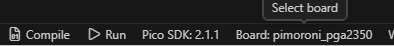 Additionally, you need to select pimoroni_pga2350 as the Board in the bottom right corner. I’ve forgotten why this specific board must be selected, but please